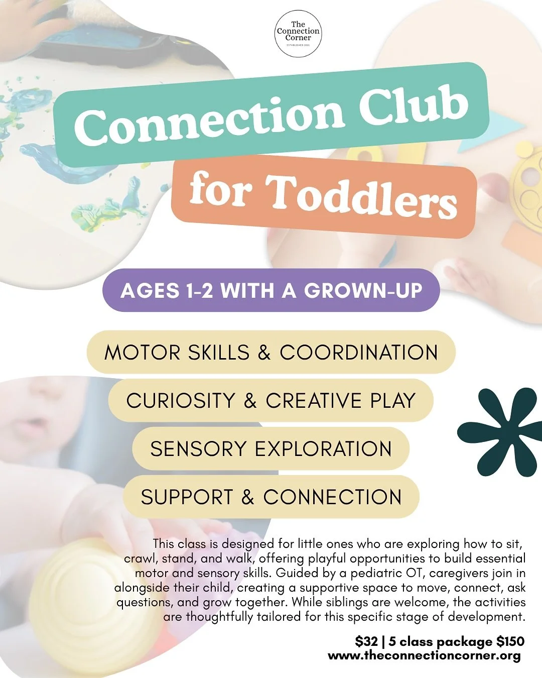 This class is designed for little ones who are exploring how to sit, crawl, stand, and walk, offering playful opportunities to build essential motor and sensory skills. Guided by a pediatric OT, caregivers join in alongside their child, creating a supportive space to move, connect, ask questions, and grow together. While siblings are welcome, the activities are thoughtfully tailored for this specific stage of development.