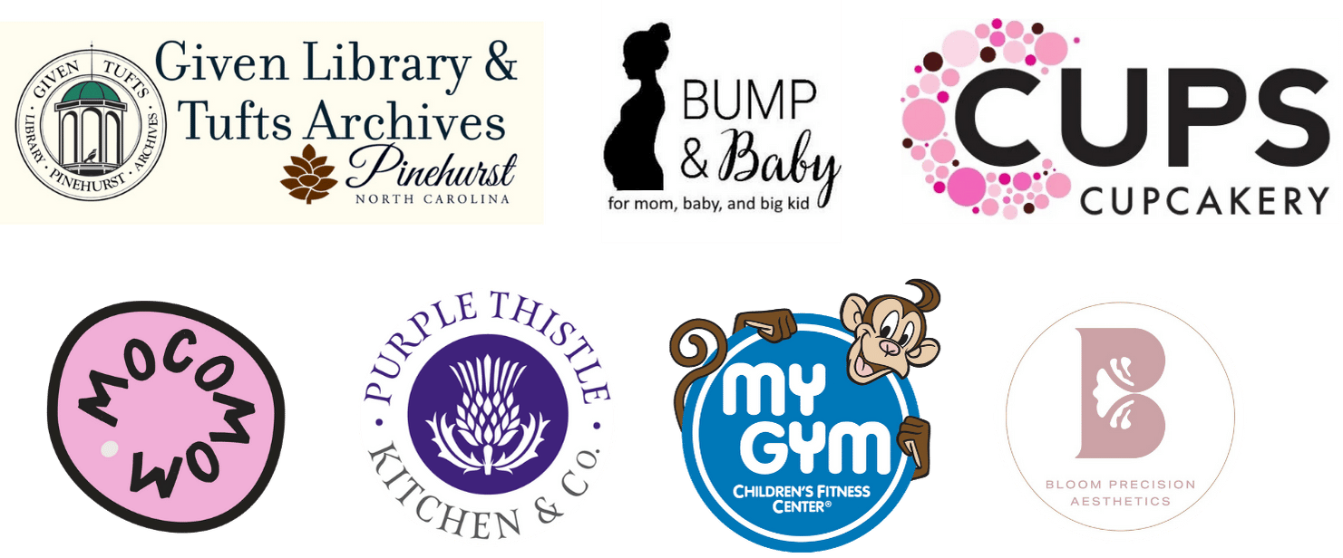 Our toddle stops: Bump & Baby, Purple Thistle Kitchen & Co., C. Cups Cupcakery, and Bloom Precision Aesthetics, finishing with My Gym Sandhills at Tufts Memorial Park for some wiggle time at the end!